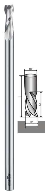 Данные удлиненные фрезы с диаметром хвостовика 3.175 мм и длиной 114 мм используются в основном для шпинделей с верхней загрузкой инструмента, а именно в некоторых моделях гравировальных машин Gravotech, Roland, U-marq (Umarq), Vision и пр. Данные фрезы могут быть использованы также в шпинделях с нижней загрузкой инструмента с цангами соответствующих диаметров.