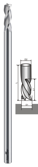 Данные удлиненные фрезы с диаметром хвостовика 4.36 мм и длиной 165 мм используются в основном для шпинделей с верхней загрузкой инструмента, а именно в некоторых моделях гравировальных машин Gravotech, Roland, U-marq (Umarq), Vision и пр. Данные фрезы могут быть использованы также в шпинделях с нижней загрузкой инструмента с цангами соответствующих диаметров.
