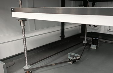 Двойной стол (ламели + слоты) подходит как для обработки больших заготовок из твердого материала, так и для мягких материалов или мелких заготовок. Вертикальное перемещение стола обеспечивается за счет шаговых двигателей и ШВП. |
