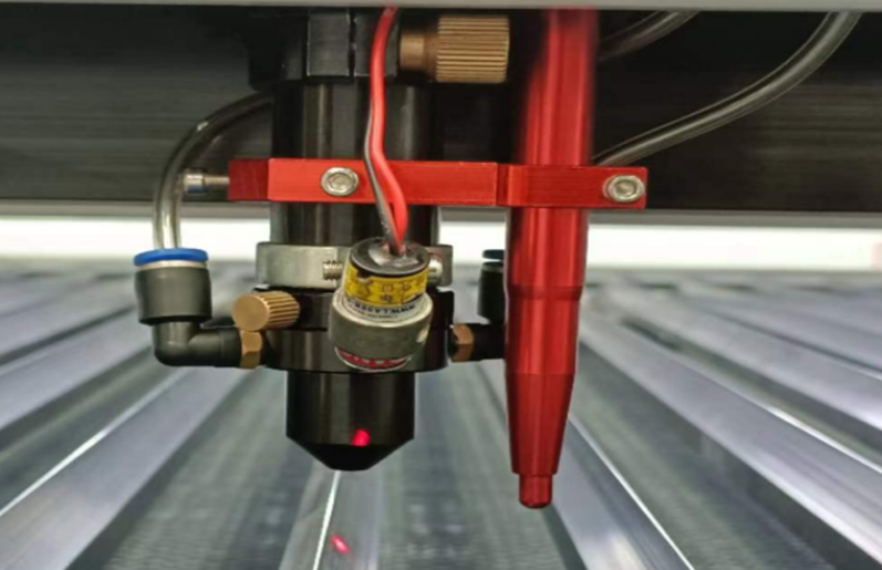 | Головка оснащена лазерным целеуказателем для визуального контроля стартовой точки. Система автофокуса контролирует позицию подъемного стола для оптимального расстояния между головой и обрабатываемым материалом. | ![]() |