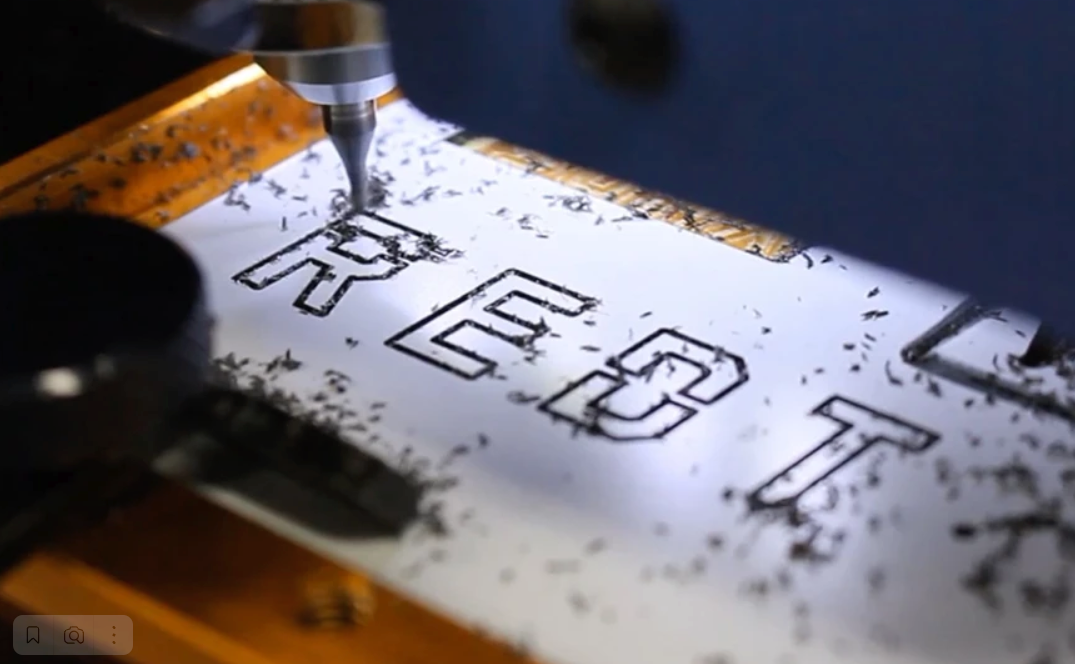 Вырезание букв, узоров и т.д. с различной глубиной гравировки в зависимости от толщины с помощью V-образной фрезы, чтобы они выглядели цельными.