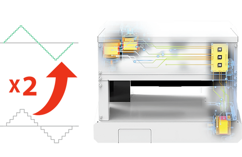 Система управления электродвигателем обладает разрешающей способностью в два раза выше, чем у предыдущей модели, что позволяет выполнять нанесение гравировки более высокого качества, с большей точностью и детальностью, а также снижает уровень шума во время работы станка.
