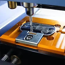 - С помощью планшета на производственной площадке пользователи могут с легкостью предоставлять гравировальные услуги своим заказчикам, поскольку заказчики могут напрямую передавать свои запросы и/или предпочтения в отношении гравировки.